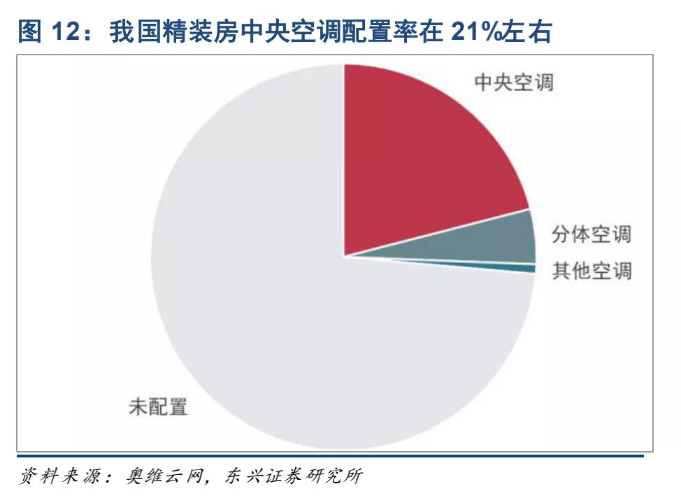 “保守假设中央空调配置率不变的情况下,精装房渗透率翻倍将直接带动中央空调市场规模翻倍。”
