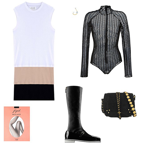 看似随意的 one piece 穿法考验身材和搭配眼光:如果没有足够点睛的配饰和鞋,就会像去下楼倒个垃圾一样没型;腿型是否好看也很重要,必要时需要靠过膝靴来修饰矫正……不过我们这里讲的 one piece 相较于它的祖先迷你裙,已是对身材相当宽容的改版了。