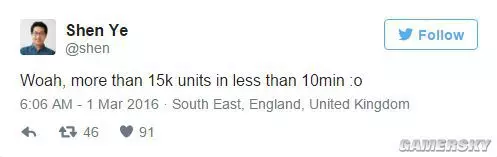 (翻译一下就是,哇,10分钟内卖出了15000多台哦~)