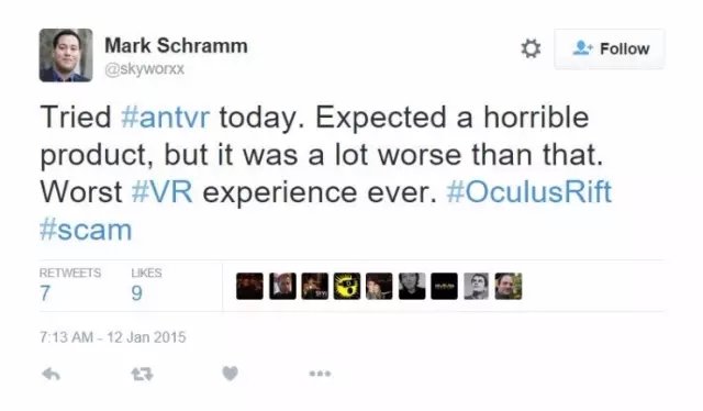 (翻译一下大概是:今天试了一下蚁视的产品。原先就觉得应该挺糟糕,但是实际上我还是大大的出乎意料了,因为这货是我用过的史上最差的VR,没有之一。)