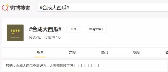 周末,一款名为《合成大西瓜》的H5小游戏突然在微博上走红。