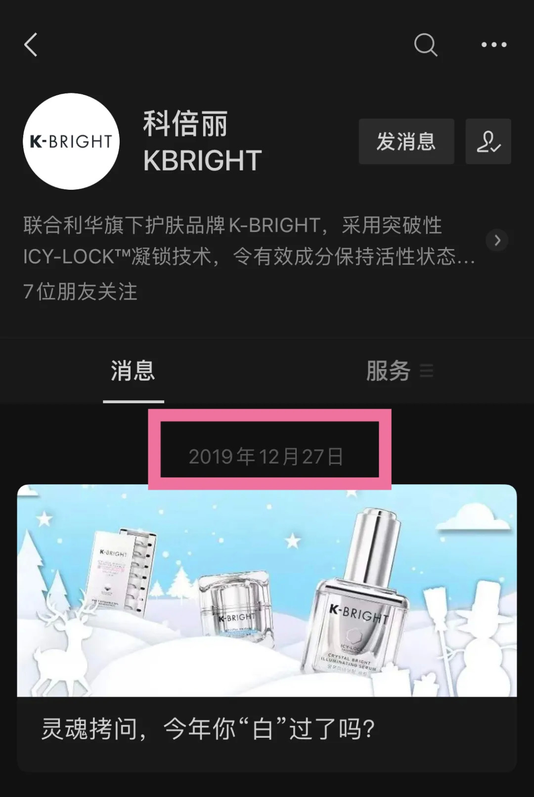 K-BRIGHT官方微信号推文停留在2019年12月