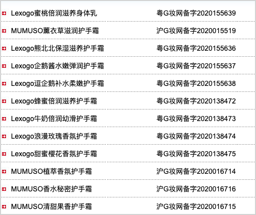 而在国产非特殊用途化妆品备案平台中,该公司拥有170条备案信息。除了生产涵盖洗发水、护手霜等多个品类的自有品牌。公司更为中山生活无忧百货有限公司旗下LATT LIV、Lexogo、viviflora等品牌,和上海木木生活贸易有限公司旗下MUMUSO木槿生活等生活百货类企业,代工生产各类个护产品。