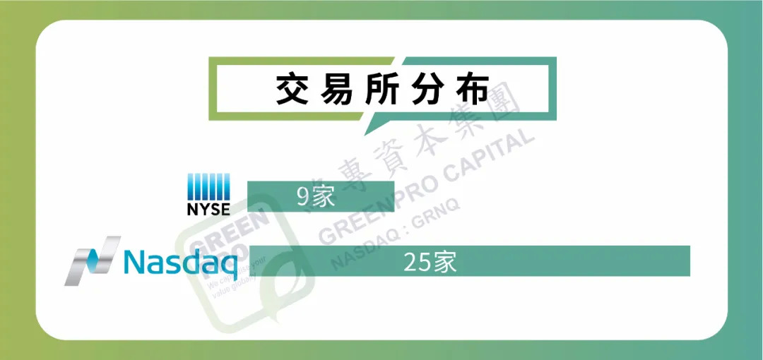 在交易所的选择上,34家中企,有25家进入纳斯达克,9家在纽交所上市。其中,募资规模前3家中企均在纽交所上市。
