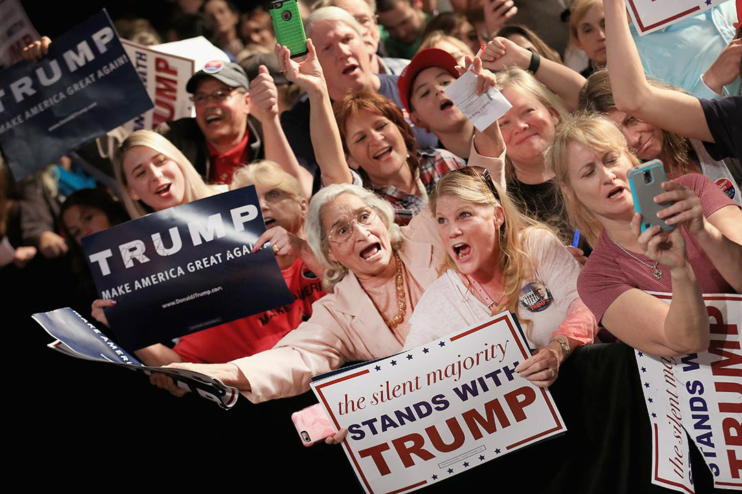 有调查显示,特朗普的“粉丝”以年纪较大、低学历的白人男性为主。91%的支持者是白人,58%为男性。约一半的支持者为45岁至64岁,34%的人为65岁以上,只有2%是30岁以下的年轻人。三分之一的支持者为高中及以下学历。不同于传统的高收入共和党支持者,超过三分之一的特朗普支持者年收入低于五万美元,大多从事蓝领工作。
