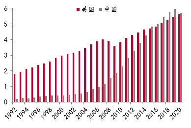 中国私人小汽车的保有量大约为2.3亿辆,居民住宅总套数大约为4.4亿套,后者是前者的两倍。2020年我国乘用车销量增速为-6%,但住宅销售面积增速还是正的。而美国私家车保有量大约是住宅总套数的两倍。这是否说明我国居民对住宅的需求相对于私家车而言要比美国大很多?