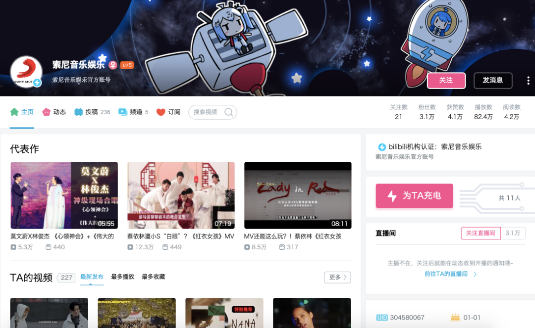 首先是2019年11月, B站上线了“音乐星计划”和“音乐UP主培养计划”,以六大资源体系发展音乐向内容,系统化地扶持优秀音乐内容创作者;然后去年1月,B站与QQ音乐达成战略合作,表示双方将在音乐人扶持、优质音乐推广及资源共享等方面为音乐人开启双平台直通车模式;去年4月,在B站获索尼4亿美金投资的高亮信息之下,其也顺势与索尼音乐达成战略合作,索尼音乐娱乐旗下曲库MV在B站正式上线。