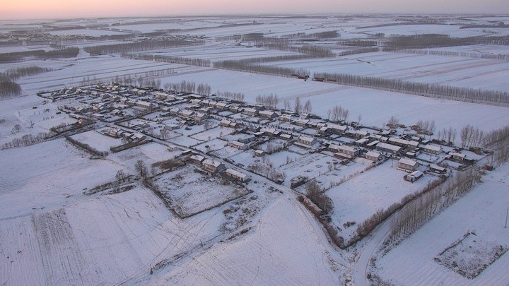 这是1月18日拍摄的黑龙江绥化市望奎县惠七镇李景华屯(无人机照片)。(张涛 摄)