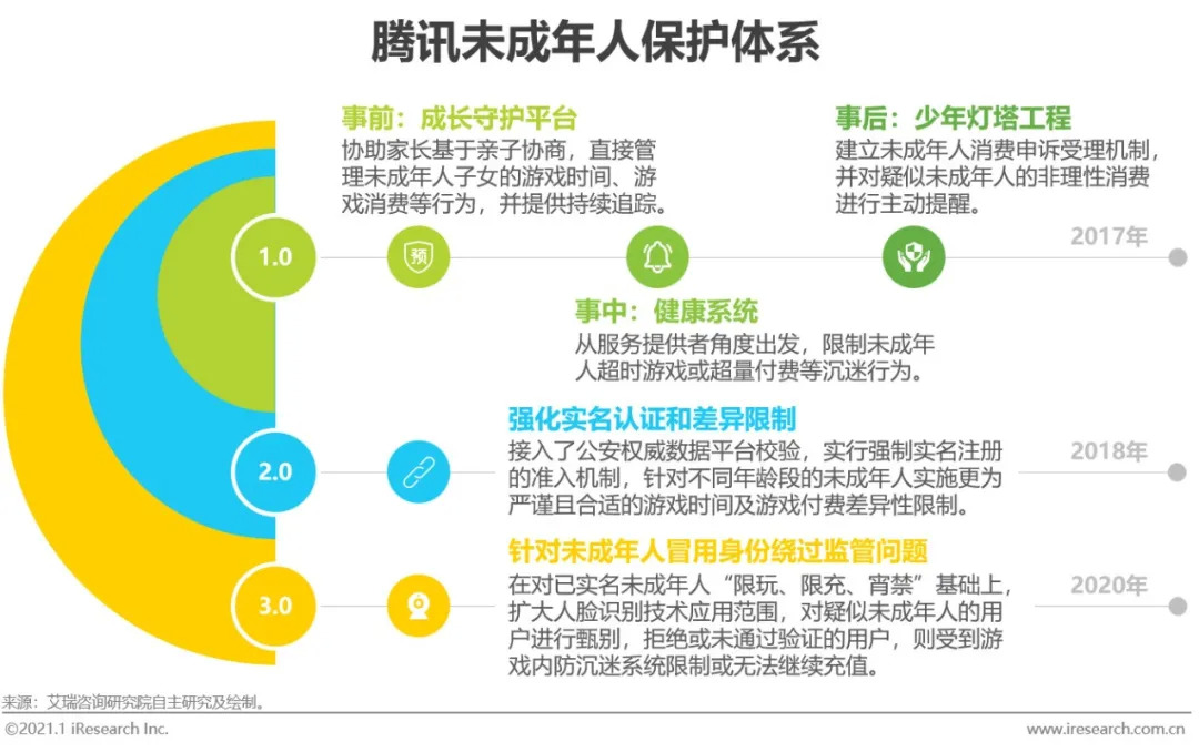 自《关于防止未成年人沉迷网络游戏的通知》下发后,游戏行业的各参与者作为游戏内容直接提供者与第一参与人,自觉履行尽职义务,确保对未成年人的保护无疏漏、无死角。以行业头部企业腾讯搭建的未成年人保护体系为例: