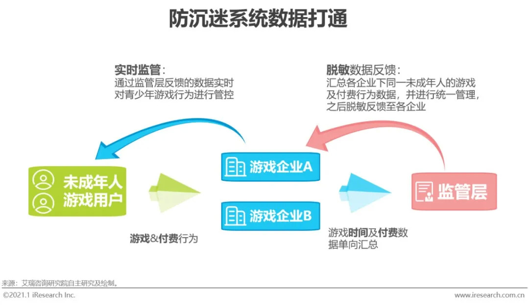 由于不同企业间的防沉迷系统和数据并不共通,导致未成年人可以选择同时游玩多款游戏或在多款游戏上分别付费。这也是未成年人逃避青少年保护系统的主要方式之一。由于用户数据对于未成年人及游戏企业来说皆具有隐私性,企业间数据在当前技术上也难以实现平行互通,目前很难实现针对未成年人跨企业、多游戏行为的统筹防护。为了防止这种情况,需要由政府牵头进行统一系统的搭建、标准数据的汇总以及最后监管行为的落实。
