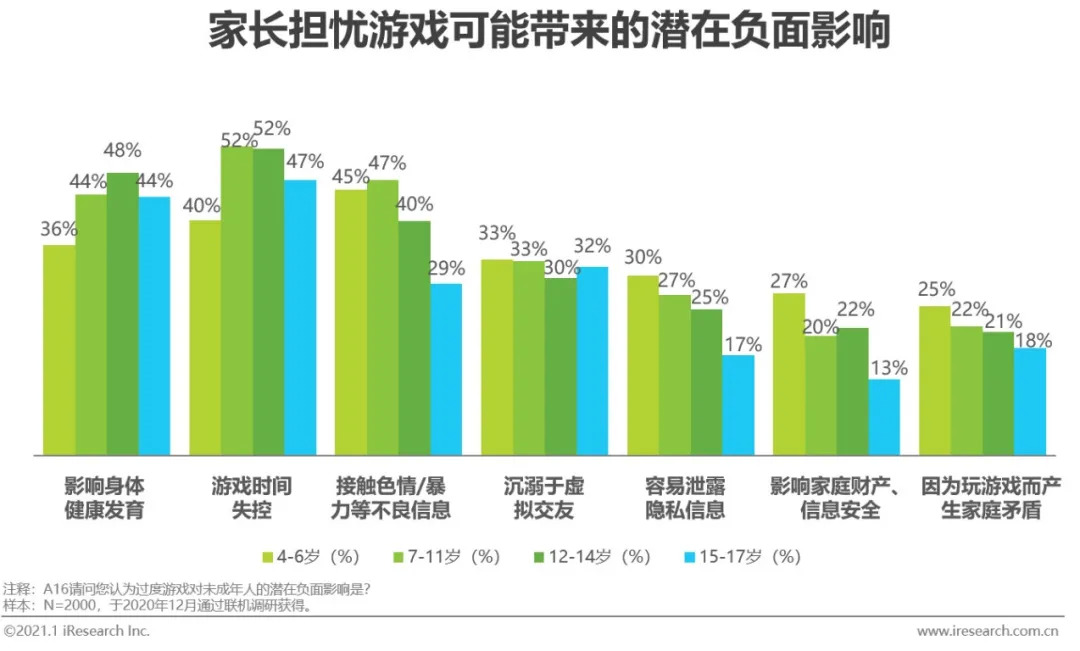 家长主要关注于未成年人游戏时间、身体健康和接触内容
