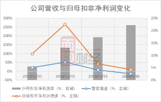 2017年至2020年三季度,华康股份归母扣非净利润率保持增长,但自2018年以后,公司的营收及归母扣非净利润增速下滑。2019年以后,公司经营活动产生的现金流量净额略高于净利润,且速动比率、流动比率等偿债能力指标高于可比上市公司。