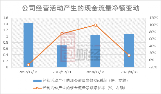 2018年至2020年三季度,公司的经营活动产生的现金流量净额保持增长,且2019年及之后其与净利润的比值大于1,表明公司经营业绩与现金流相匹配。
