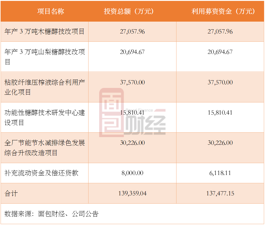 此外,公司称“粘胶纤维压榨液综合利用产业化项目”主要产品为结晶木糖,主要用于公司木糖醇产品的生产配套;“功能性糖醇技术研发中心建设项目”为提升公司的研发能力;全厂节能节水减排绿色发展综合升级改造项目”为完善公司现有废气、废水、固废处理设施。