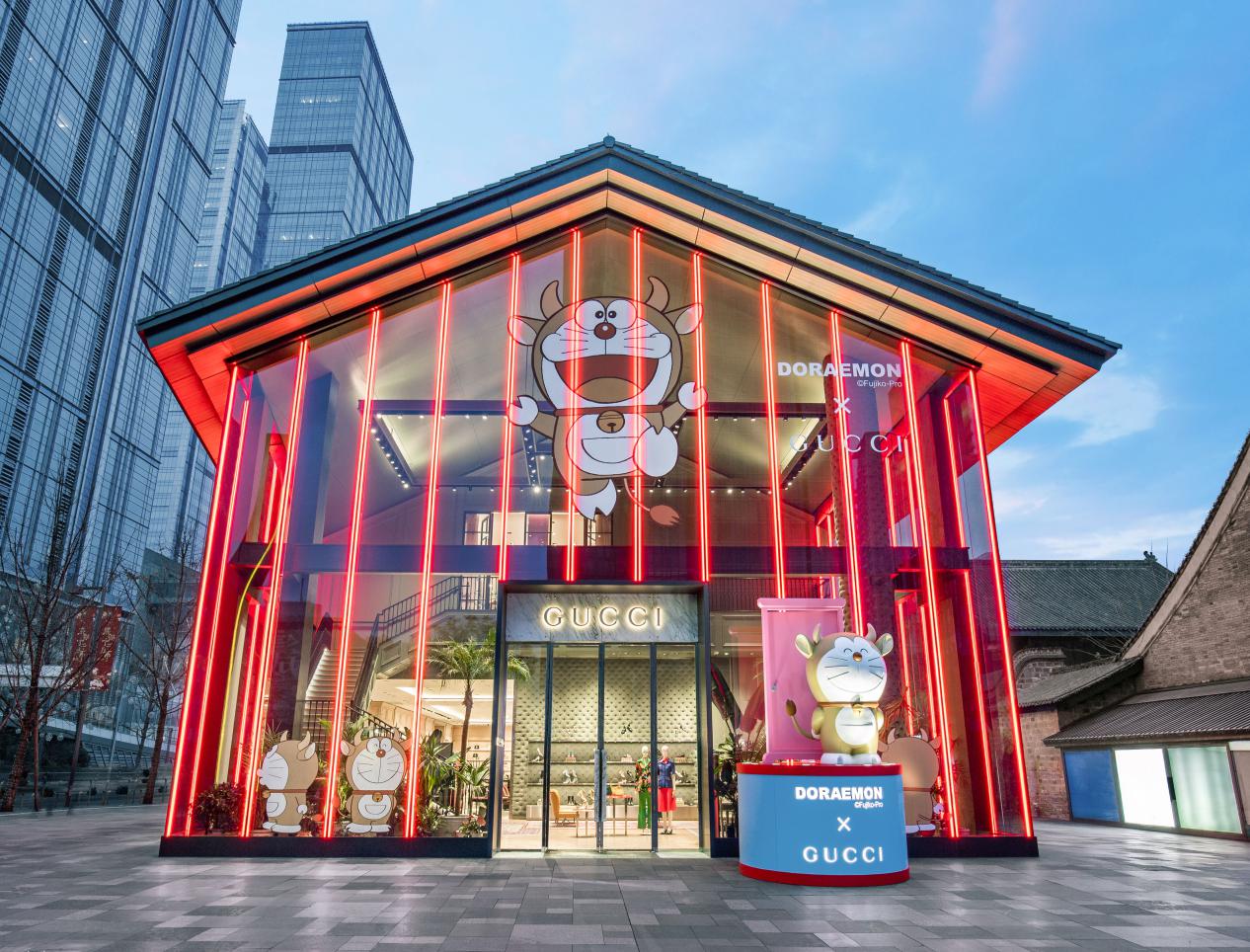 近日,古驰欣然宣哆啦A梦主题限时店在成都开幕,灵感源于交互式数字地图上形似大头针的定位图标(pin),创意打造漫画风格探索空间,用天马行空般的想象力诠释全新联名系列,以庆祝即将到来的中国新年。坐落于成都的限时店与当地自然与人文景致互动联结,碰撞出独特的城市活力。