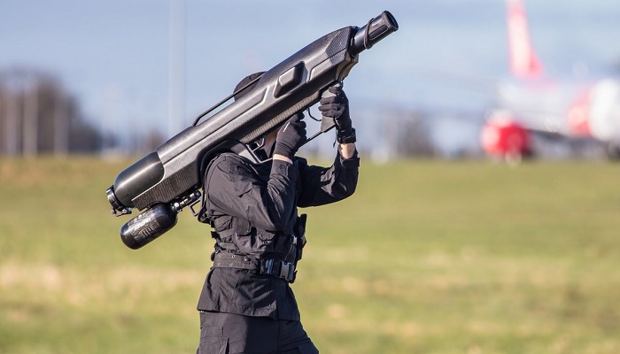 为了避免无人机带来的威胁,一个英国工程师团队研制出了一款名为“Skywall 100”的肩扛式气动火箭筒,它能够打下100米开外的无人机。它并不会将无人机在空中击毁,而是会用一张网将无人机捕获,把它毫发无损地带回地面。