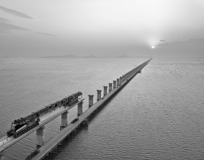 在新建福厦铁路湄洲湾跨海大桥建设现场,中铁十一局的“昆仑号”千吨级运架一体机正在作业。新华社发