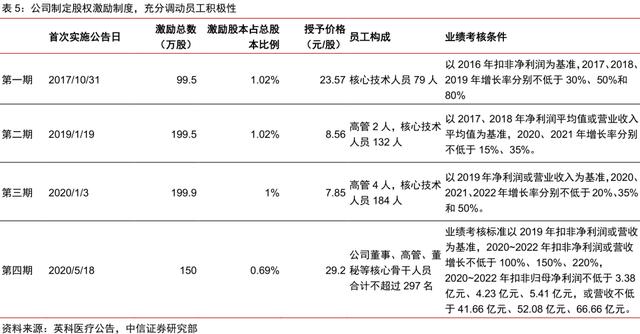 自2017年上市至今,英科医疗已经推出四期股票激励计划,激励对象以高管、核心技术人员为主,覆盖人数不断增加。