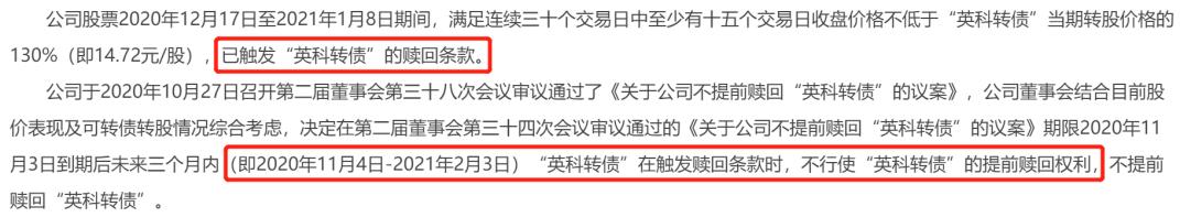 而国金证券研报显示,可转债存续年限呈缩短趋势,2019年为1.67年,2020年统计的29只退市转债的平均存续期进一步缩短到1.33年。而英科医疗已发行近1.5年,目前距离公司不提前赎回的承诺也近在咫尺。