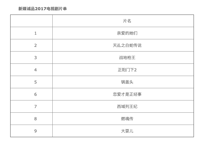 相比之下,华谊2017年高调宣布加码剧集时拿出的片单要更有吸引力。