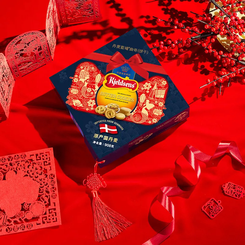 “丹麦蓝罐是一个时节性比较强的品牌,春节期间的业绩非常重要。为了迎接春节,我们正在按计划增加库存。”马如城告诉小食代,丹麦蓝罐在今年春节推出了专供天猫旗舰店的两个新SKU,分别是1200克礼盒以及中国结礼盒,均采用了融合中国传统节日元素的新包装。