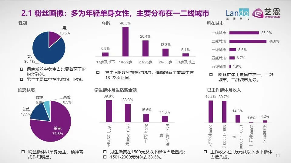 根据艺恩咨询2019年发布的《粉圈新洞察与粉丝运营进阶全攻略》显示,粉圈群体中女性占比高达86.4%。而同年数据显示,女性玩家在《王者荣耀》用户中的比例为51.8%,比当年中国电竞群体中女性占比(24%)高出一倍多。偏高的女性玩家比例,决定了玩家对明星的接受度和包容度更高。