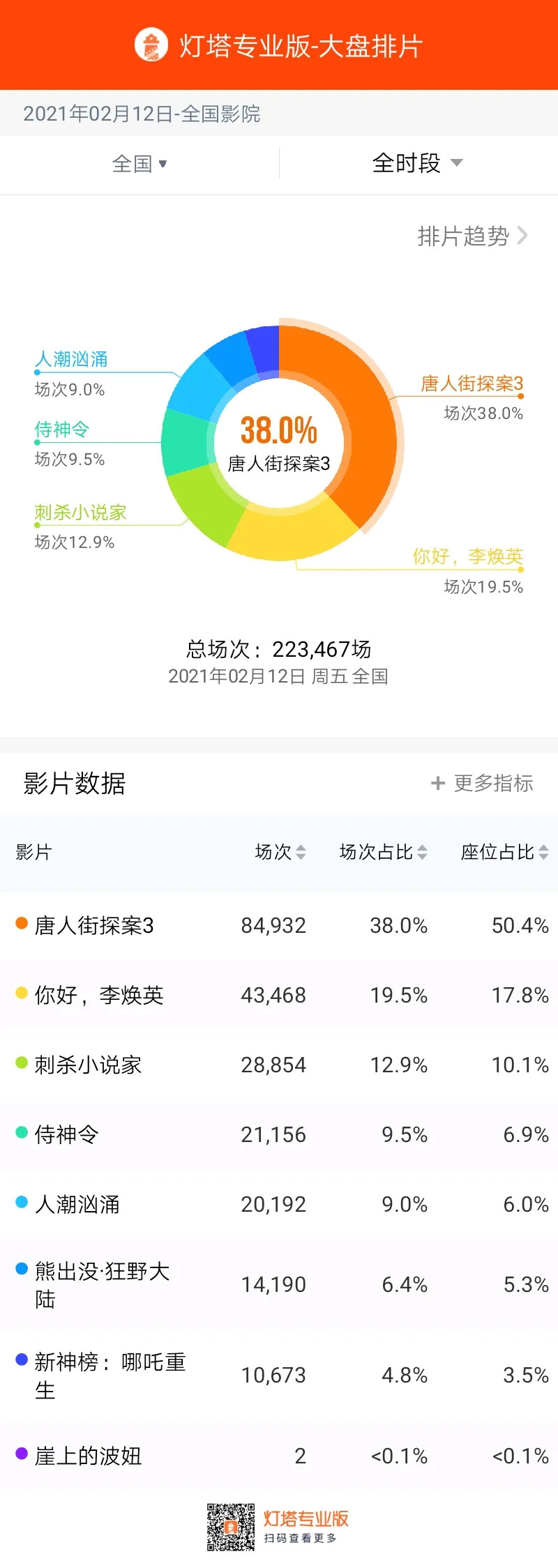 而根据毒眸联合灯塔研究院发布的《2020中国电影市场用户报告》,过去三年春节档都体现出较强的头部效应,由三部头部电影收获了80%的票房。这意味着,接下来还会有一部电影有机会进入80%俱乐部。