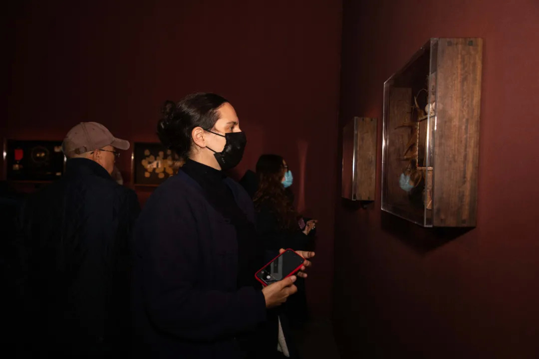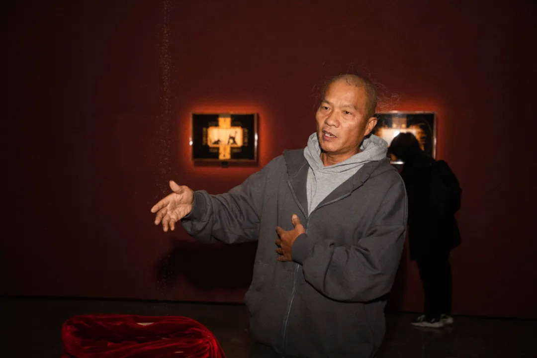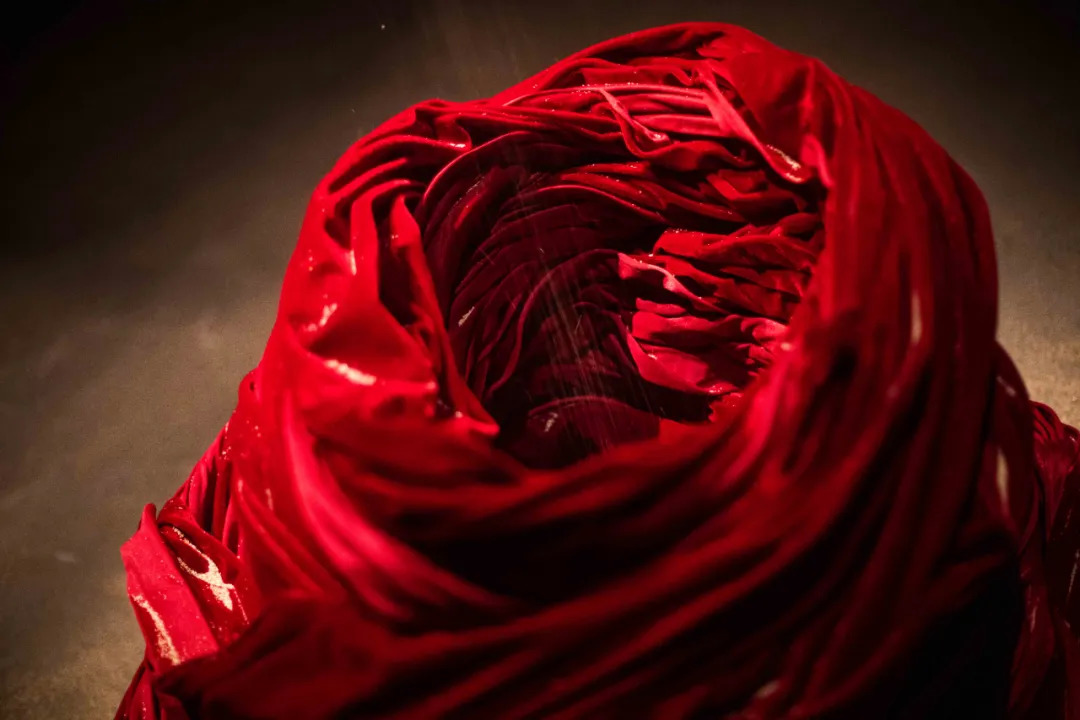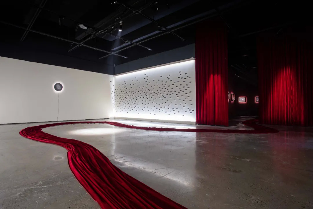 跟随着艺术家缓慢转圈的步履,我们穿过厅内的红色幕布向里走去,呈现的是作品《留给时间的》。该系列作品是艺术家于2020年疫情期间基于作品《镜子》的再创作。