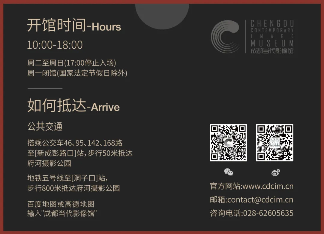 成都当代影像馆于2019年4月27日正式开馆,坐落于成都北三环内、府河河畔,位于国内首个以摄影为主题的公园——府河摄影公园的核心位置。摄影公园占地面积150亩,影像馆建筑面积7500平方米,拥有6个专业展厅、1个学术报告厅、1个专业影像图书馆以及多个公共教育空间。作为专注于当代摄影及影像艺术的文化机构,成都当代影像馆与全球著名的影像艺术机构紧密合作,致力于高品质的影像艺术展览、有深度和高度的学术研究以及公众视觉修养、审美教育的传播和普及。致力成为观测中国影像状态,促进国内、国际交流与对话,推动艺术与学术生产的专业影像美术馆。