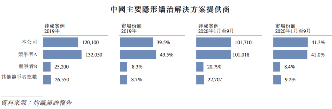 根据招股书,时代天使是一家隐形矫治解决方案提供商。根据灼识咨询报告,2020年前9个月(前三季度),按达成案例计算,时代天使以同期约为41.3%的市场占有率引领市场。