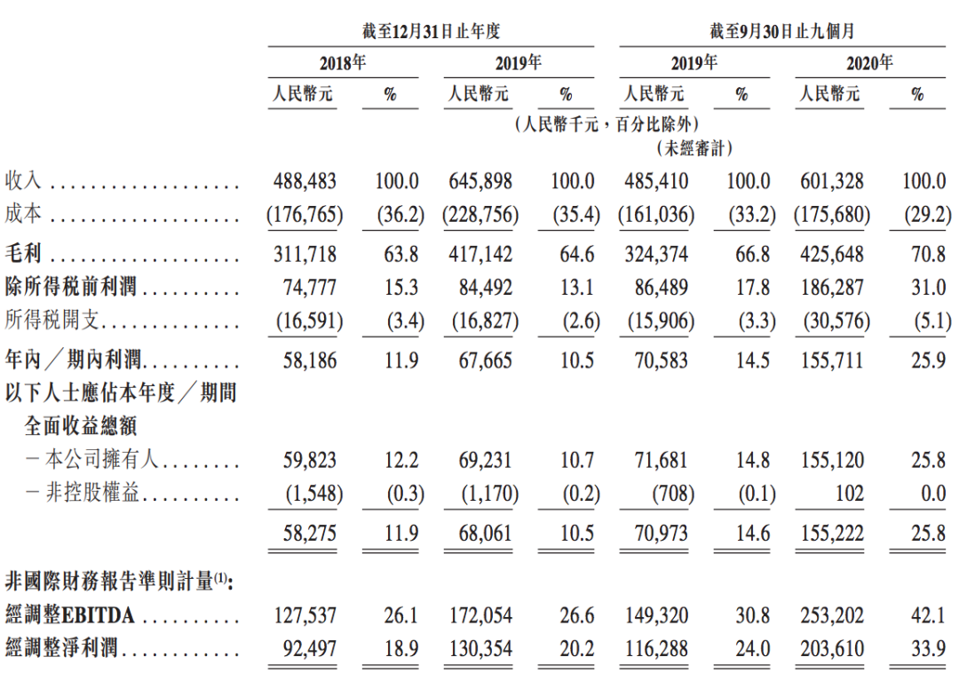 2018年、2019年,时代天使的净利润分别为5818.6万元、6766.5万元,利润率分别为11.9%、10.5%;2020年前三季度净利润为1.56亿元,2019年同期的净利润为7058万元,利润率分别为25.9%、14.5%。