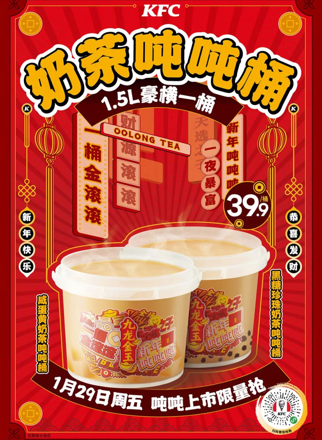 最近,肯德基推出了1.5L“奶茶吨吨桶”,豪横登场,引得小红书女孩们纷纷打卡,行业人也都在关注。