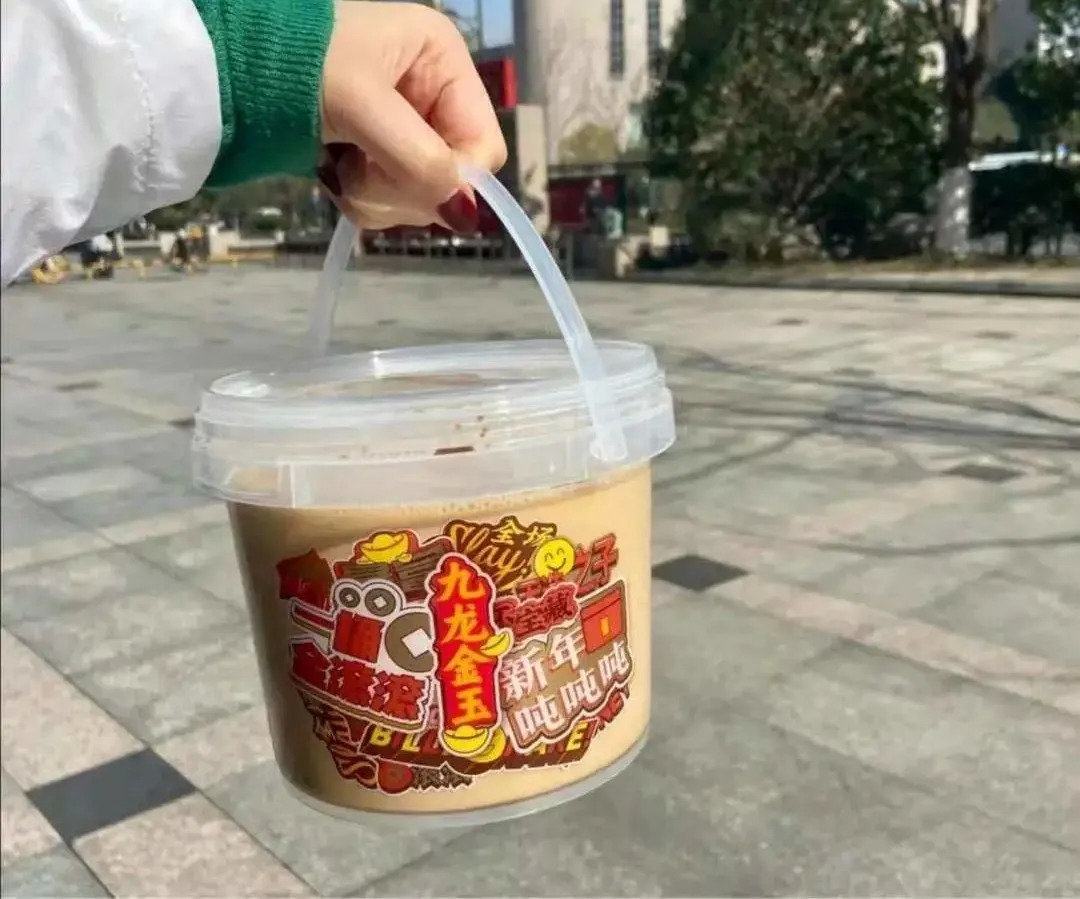 与之前火过的桶装奶茶不同,“吨吨桶”很方面吸到桶底的珍珠,而且“桶装”,也有很强的话题感。