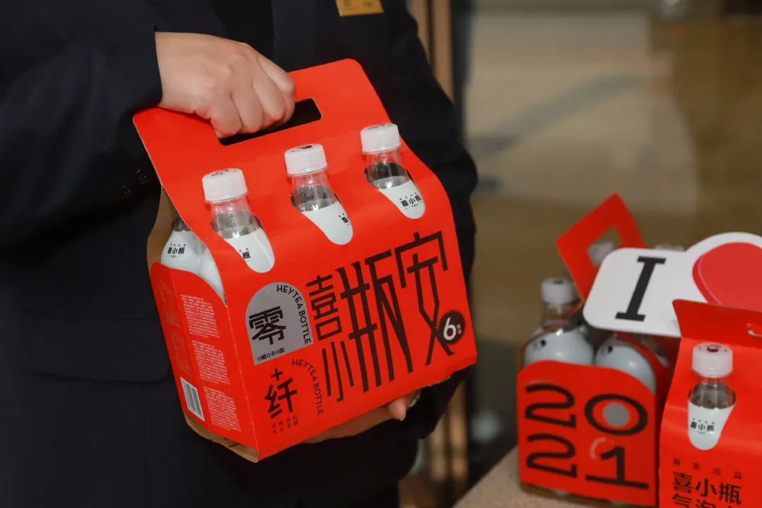 前两天,喜茶也将喜小瓶悄悄变红了,推出了6瓶装和12瓶装礼盒,寓意鸿运当头,红红火火,喜茶天猫旗舰店已经在售卖。