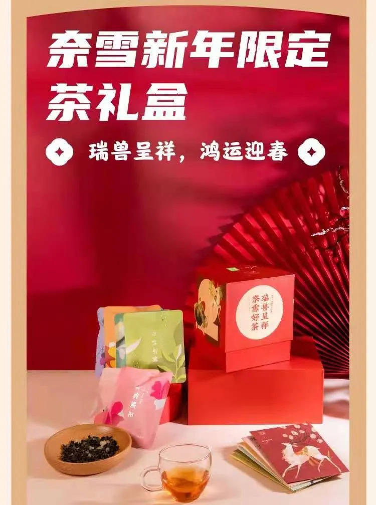 而奈雪把茶打包成茶礼盒,也满足了人们在春节前囤货感。