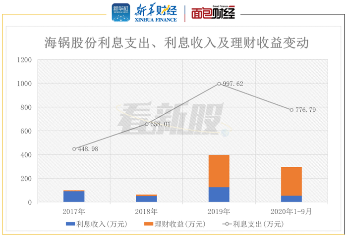 图5:2017年至2020年9月海锅股份利息及理财收支变动