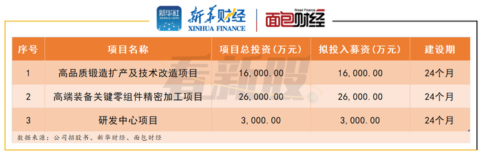此次申请上市,海锅股份拟募资总额约4.5亿元,主要用于高品质锻造扩产及技术改造项目、高端装备关键零组件精密加工项目以及研发中心项目。