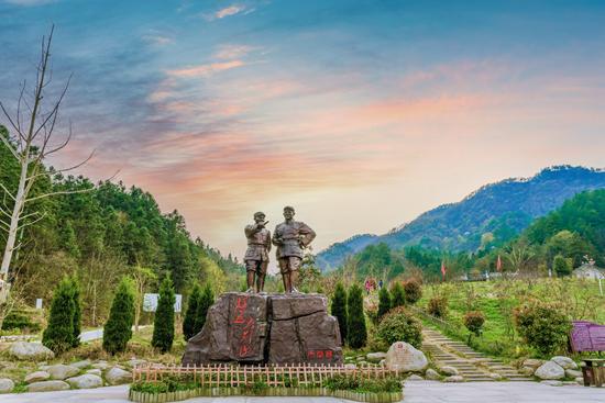 2016年4月1日,安徽省六安市金寨县,刘邓大军千里挺进大别山雕像。石耀臣/摄