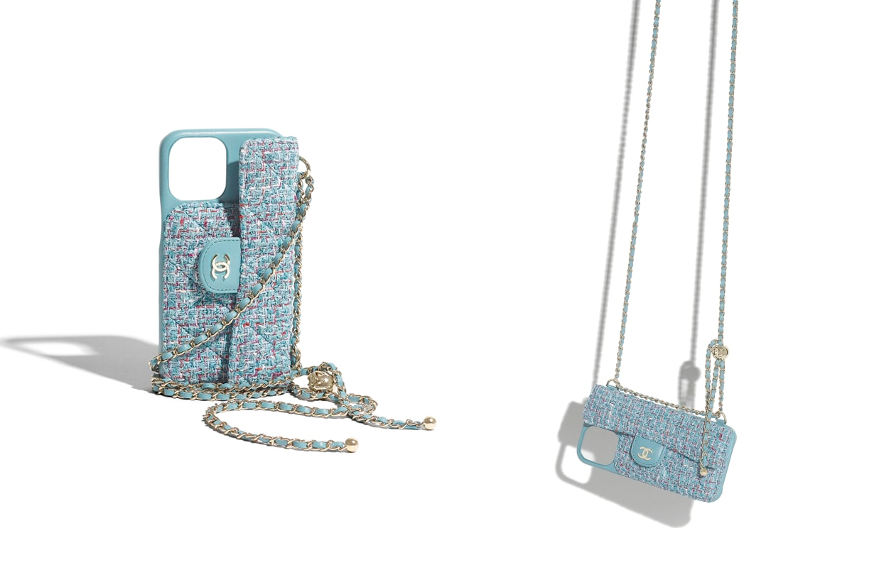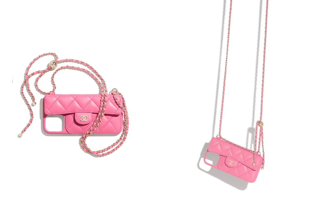 Chanel香奈儿在去年初也针对iPhone 11系列推出了高级小羊皮手机壳,并饰以香奈儿最标志性的钻石缝。今次,在iPhone 12 上架几个月后,香奈儿终于趁着2021春夏前导系列带来全新手机壳系列。