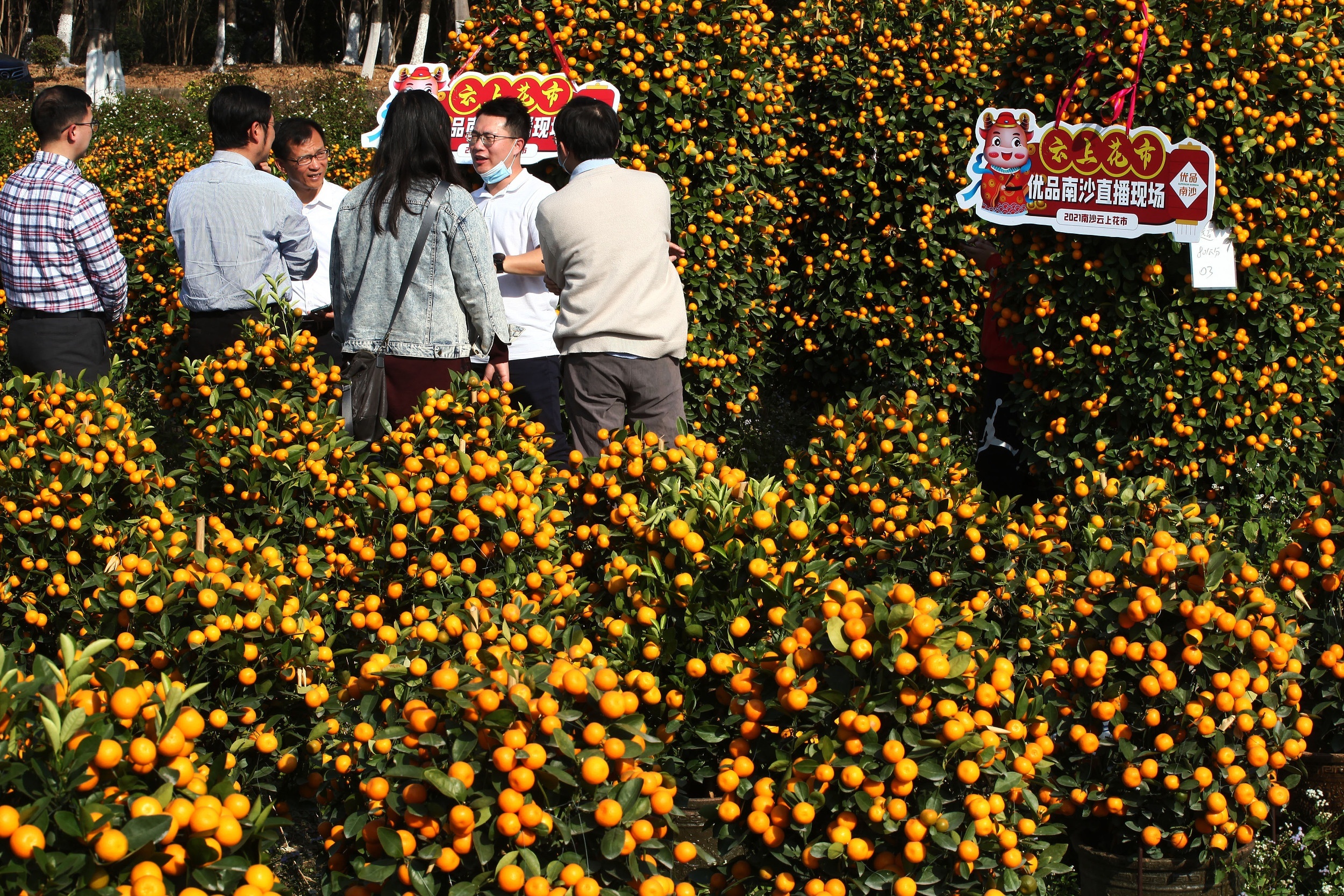 例如盆桔通常需要种植两到三年才结果,因此产量是提早规划好的,种植投入了的成本从肥料、水电、人工到土地租赁不等。2021年春节前夕,这些已经提前规划好的货源成熟代售,但由于花市的取消渠道却被压缩,不得不滞留棚里。
