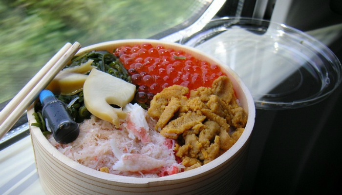 北海道以新鲜海产著称,因此当地便当便大量使用鲑鱼卵、海胆及螃蟹等食材;秋田、仙台等地盛产大米,所以便当中的米饭也就特别好吃;长崎、横滨、神户等地华人众多,这也使带有中国风味的烧卖、煎饺极受追捧;而九州便当的主菜则以鸡肉或猪肉为代表,所以一看到黑猪肉你就知道这是鹿儿岛站了。
