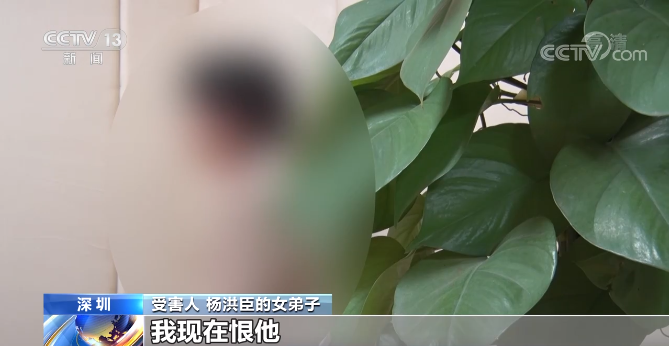受害人 杨洪臣的女弟子:我现在就是恨他!我现在恨死他了!我现在恨他!他把我骗的什么都没有了,一无所有,家人也没有照顾上,自己什么都没有。我愿意以我自己的亲身经历去告诉其他的人,一定要提高警惕,不要让自己再受到伤害!