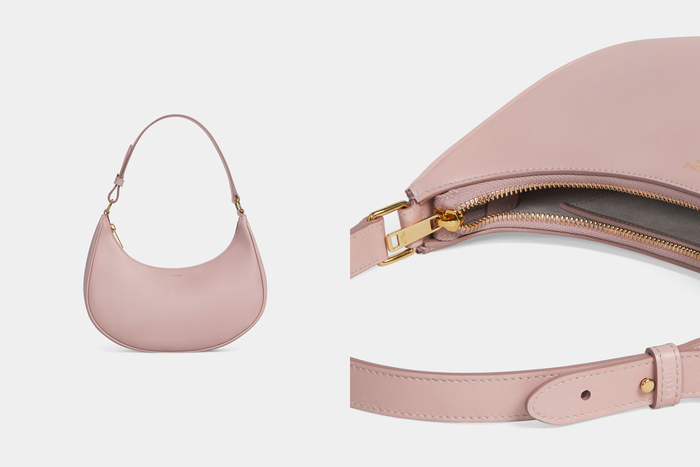 全新系列共含四款不同颜色与设计的手袋。咖啡和淡粉两个纯色款与流畅的半月形轮廓映衬,比原版更为明亮的色彩,则在沉稳气质外表现出跳脱的活泼感。
