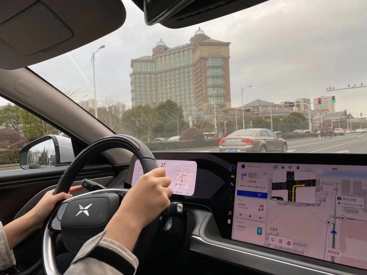 很快,50分钟左右,我驾驶着小鹏P7来到了太仓市,期间经历了畅通无阻的高速道路,也跑过了人车混杂的国道,P7良好的NVH表现,足以应付上述路况。这里需要着重点名,前双叉臂后多连杆的底盘结构,配合上低重心电池组的底盘特性,让P7居然有很强的运动属性。