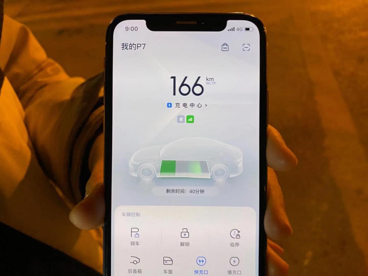 到了考验快充能力的时候到了。此次选择的是星星充电的快充桩,通过小鹏手机APP实现系统扫描和预约充电。从车内和手机APP端的时间差我们可以看到,短短4分钟P7便充入了31公里的续航,速度非常之快。