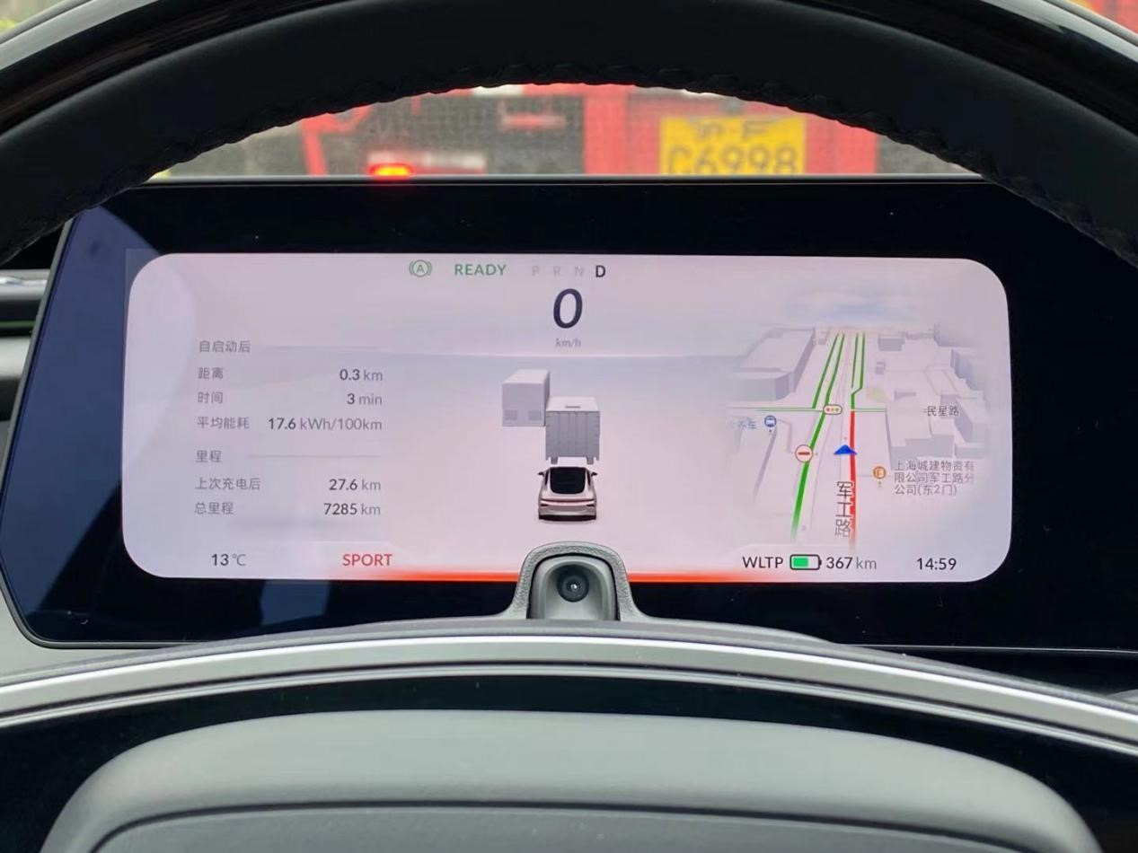 这时我们的综合百公里电耗在15.4kWh/100km,行车电脑中WLTP计算模式下的剩余电量为303km。在高速和“SPORT”全程空调状态下能够得到这样的能耗数据实属不易。
