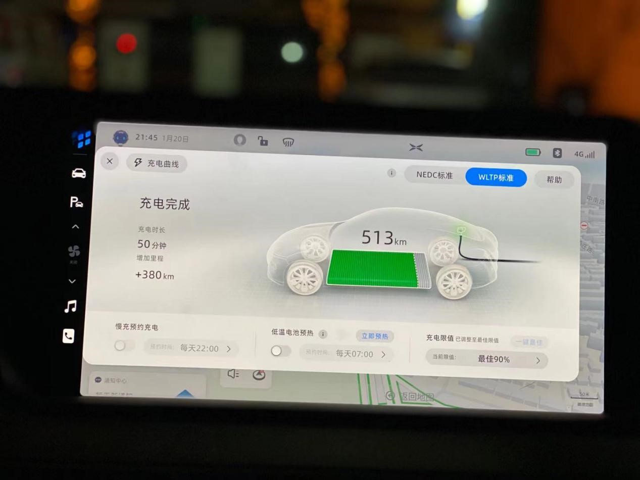 最终,在经历50分钟之后,以增加380km续航里程的成绩充至513km。