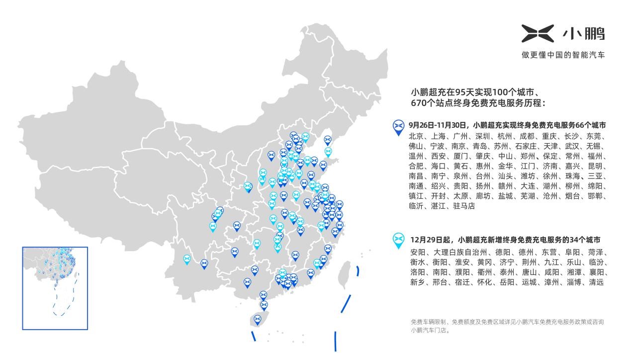 对此,小鹏汽车对于免费充服务站点扩张也解释称,主要是通过与全国优秀充电运营商持续合作,包括国家电网、南方电网、特来电、星星充电、小桔充电等。根据城市客户数量和城市面积,优先选择场地位置优、服务好、安全标准高的站点,为小鹏车主提供免费充电服务。