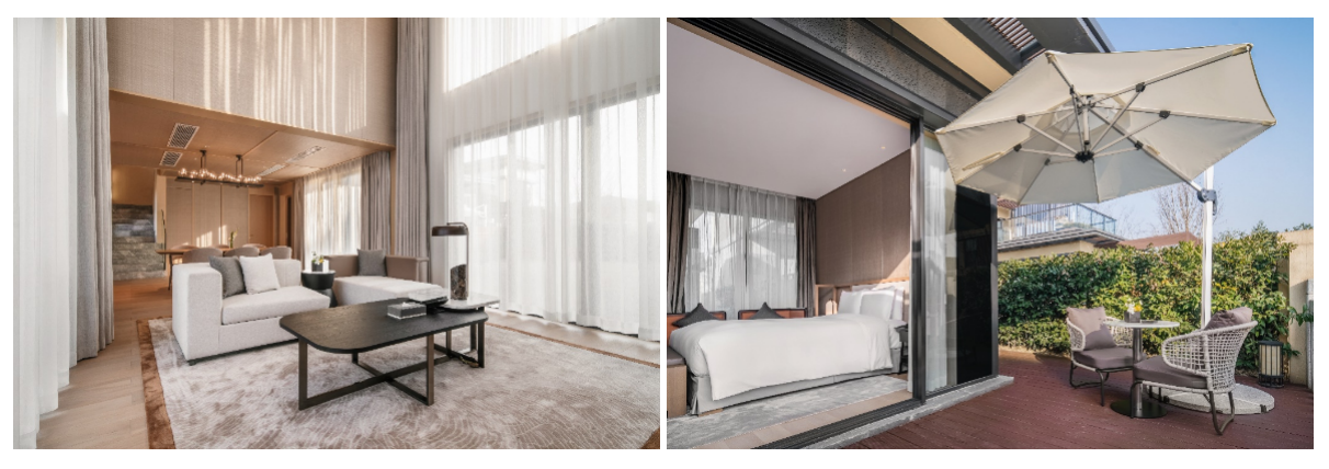 成都海泉湾美憬阁索菲特酒店由PAL Design著名的酒店设计师梁景华(Patrick Leung)设计。这一度假目的地拥有位于私密建筑中22间有私人观景阳台的豪华客房,44座独栋别墅附带专属水岸花园和私人温泉汤池。客房一律傍水而居,室内以明快的新亚洲风格为基调,融合绿色田野和水元素,以及巴蜀风格装饰等当地特色,处处展现着不为人知的宁静、传奇与魅力。
