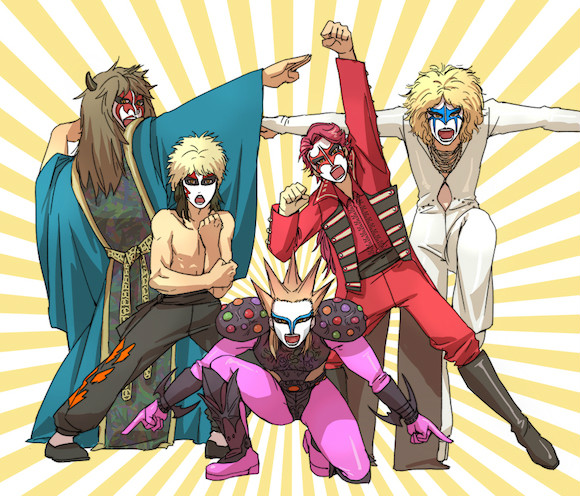 然后呢,乐队主唱是地狱里的皇太子DAMIAN 滨田殿下,鼓手ACE长官是原地狱中央情报局长官,其他成员包括人称“参谋”的原地狱军事局参谋、原先担任地狱文化局长的石川和尚。。。